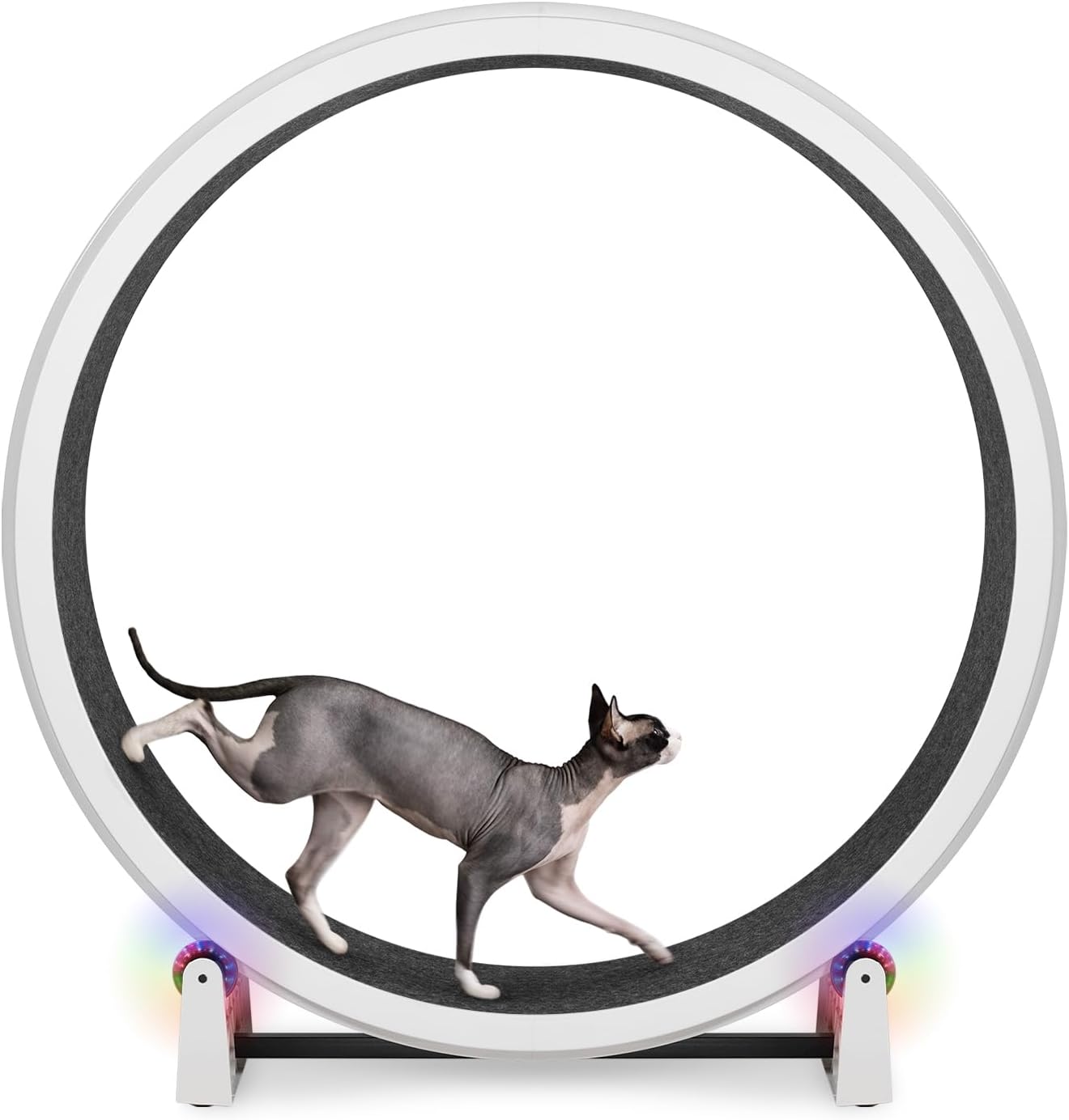 Cat Exercise Wheel - Safe 48" Diameter - Made in The USA - Black Wheel with Black Felt Traction Pads and Solid Black Inline Wheels