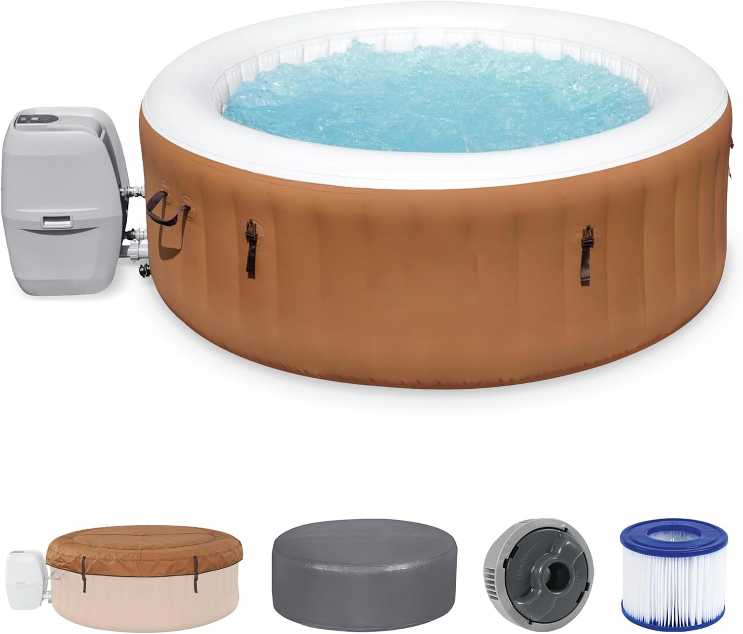2 to 4 Person Inflatable Hot Tub Round Portable Outdoor Spa with 120 Soothing Jets with Cover, Orange