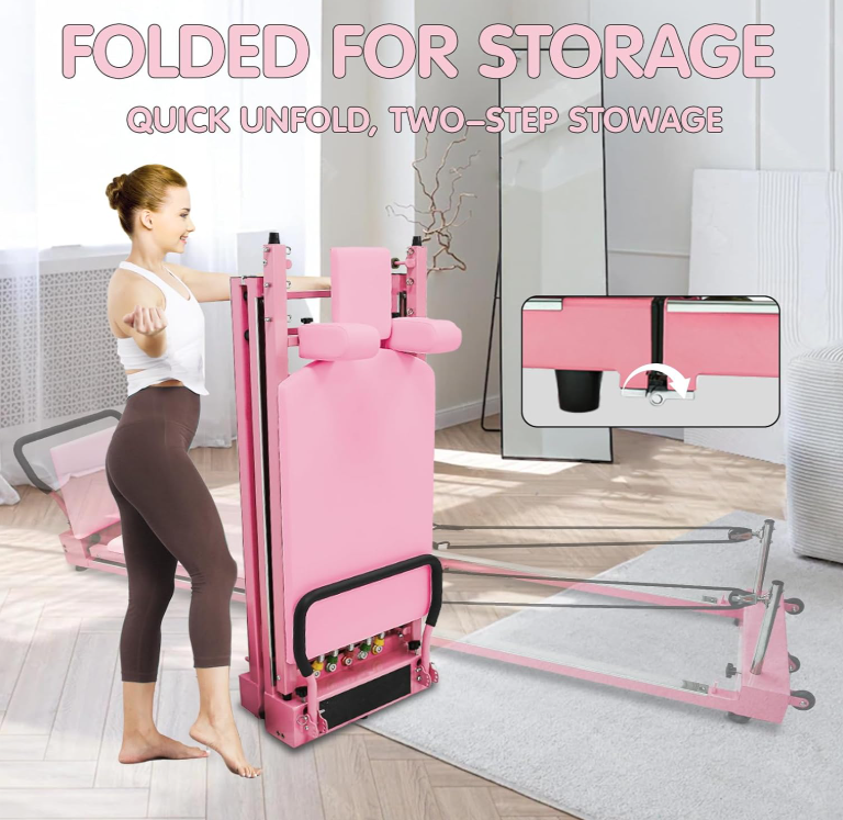 Foldable Pilates Reformer Machine with High Strength Alloy Springs, Adjustable Resistance for Home Gym, Suitable for Beginners and Intermediate Users