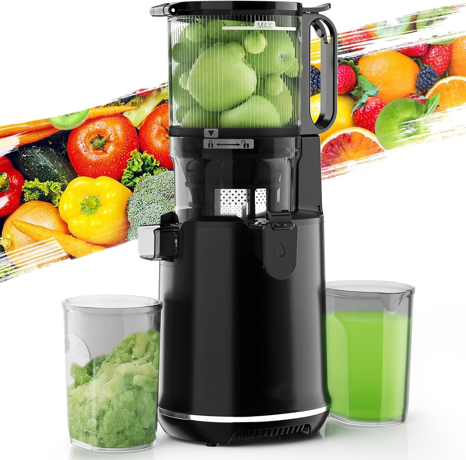 Cold Press Juicer with 5.3" Large Feed Chute, Slow Masticating Juicer for Whole Fruit and Vegetables