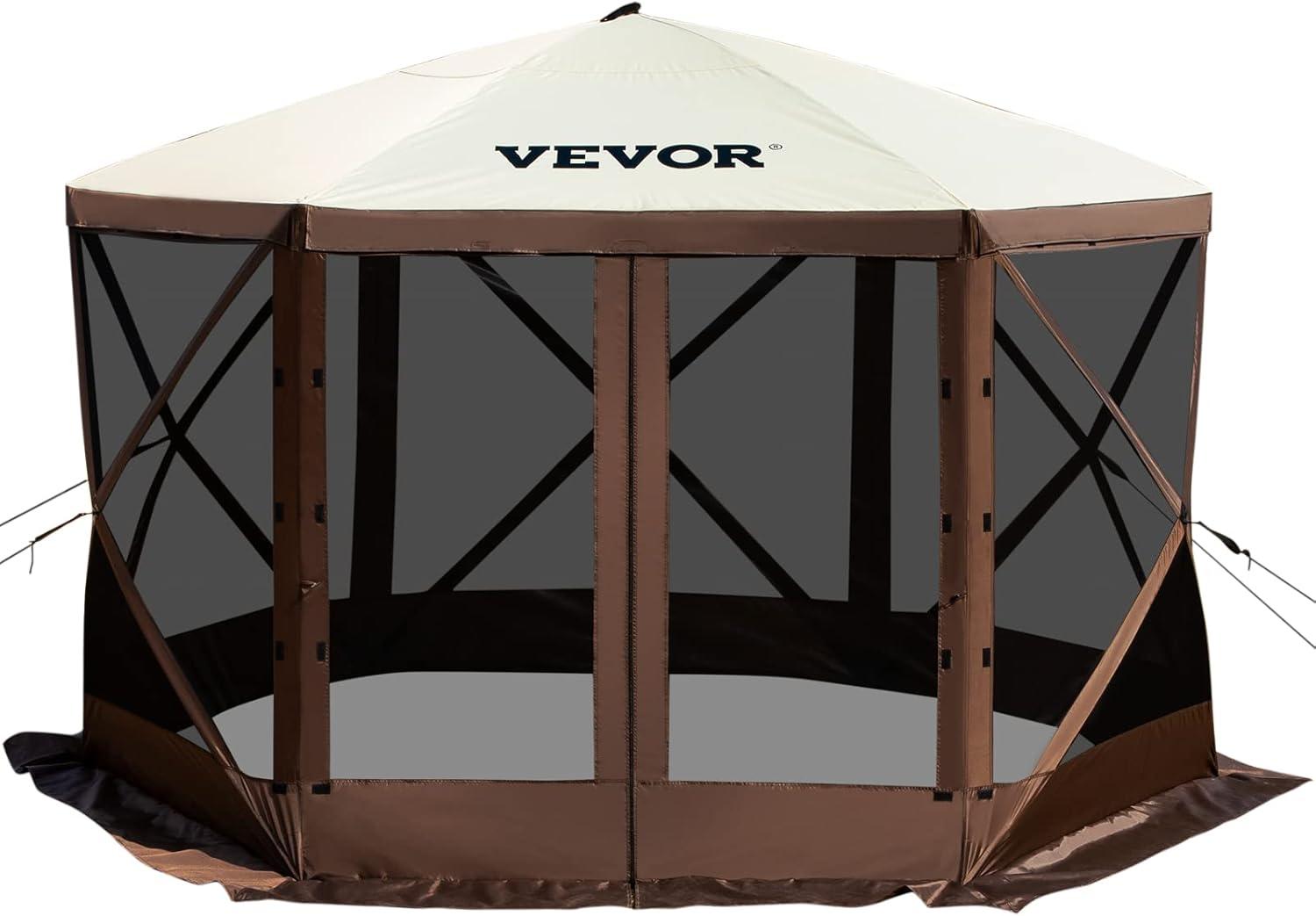 6 Sided Pop-up Canopy Shelter Tent with Mesh Windows, Portable Carry Bag, Stakes, Large Shade Tents for Outdoor Camping, Lawn and Backyard, Brown/Beige