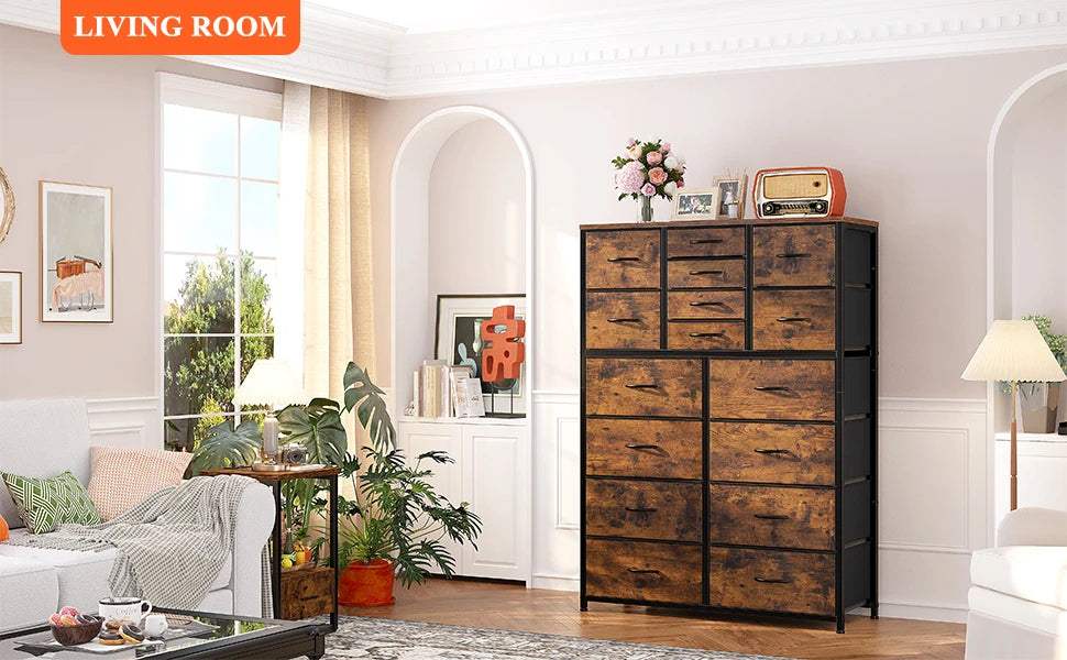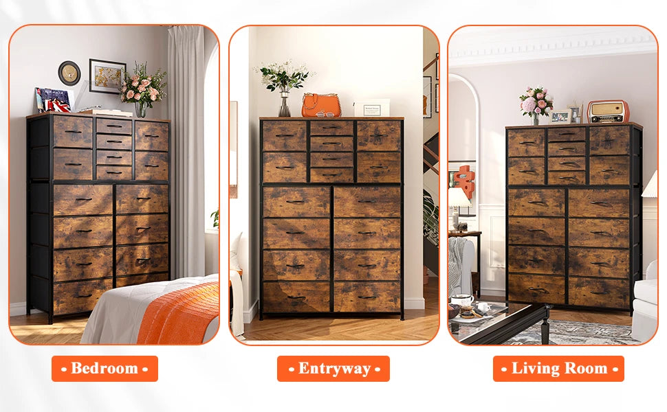 The structure of the bedroom tall dresser is made of advanced metal and wood boards, and the back is designed with "double X" support bars to provide you with strong stability and large weight capacity.
