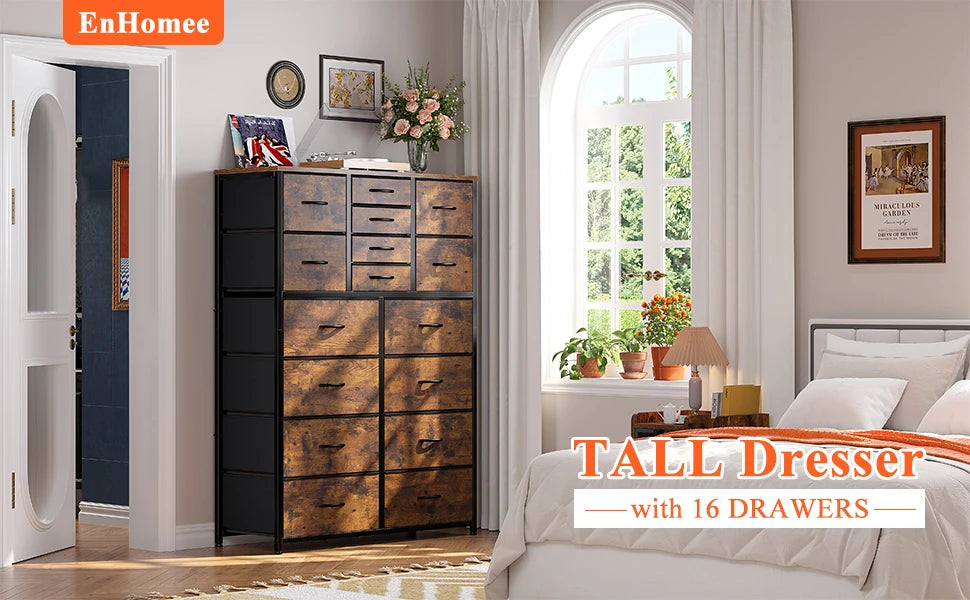 Home / 🔥Today's discount is only $32.99-🔥Enhomee Tall Dresser For Bedroom, 16 Deep Drawers Large Dresser, Brown Double Dresser, Chest Of Drawers For Closet, Highboy