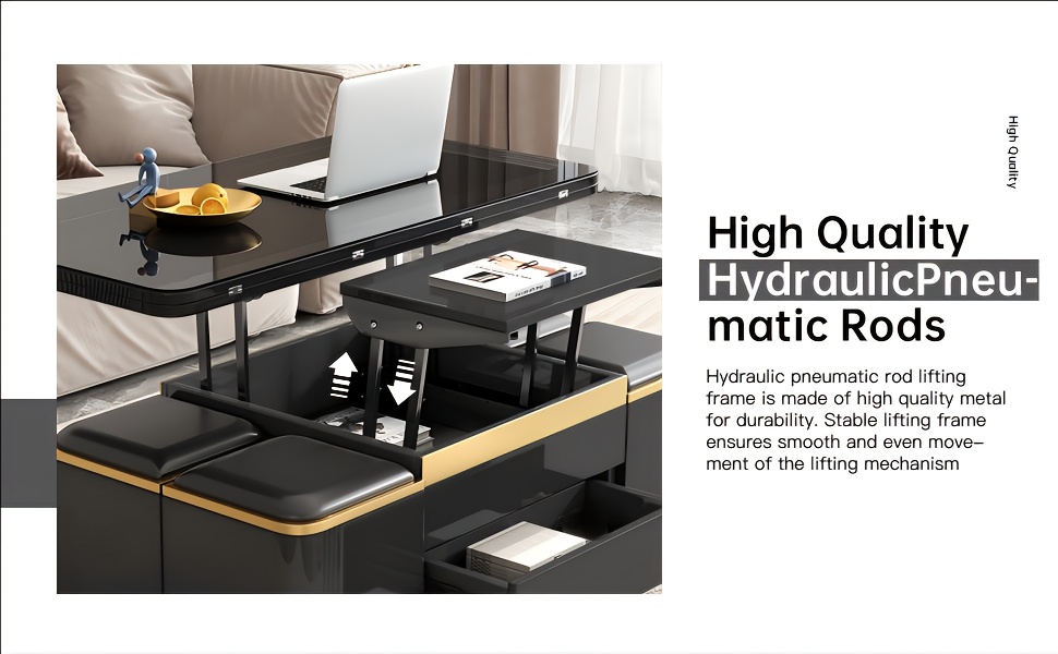 We get it—furniture that feels cheap is the worst. This coffee table? It’s thick, solid, and built for daily use. The desktop is heat-resistant, so you can set down a hot mug or a warm plate without worrying about marks. The hydraulic lifting frame is made of high-quality metal—no wobbly movements, no squeaky noises. Even when it’s fully expanded as a dining table, it holds up well—no shifting, no instability. This isn’t a “quick fix” piece—it’s something that’ll work for your space for years.
